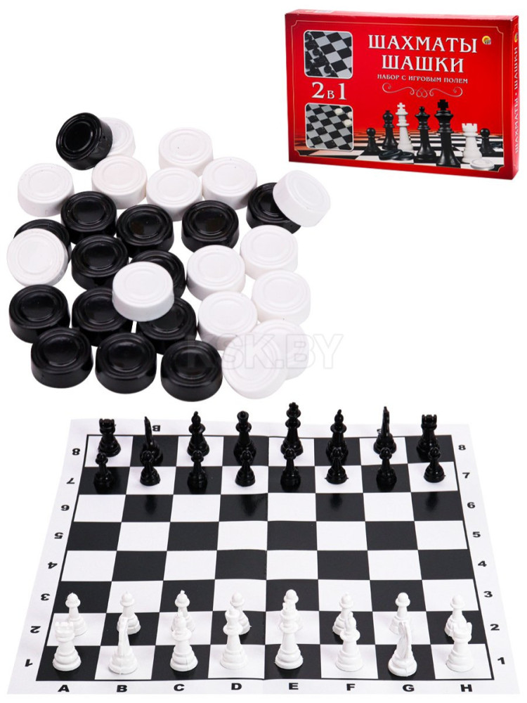 Шахматы, Шашки в средней коробке с полями арт. ИН-1614