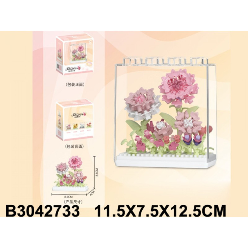 материал: пластмасса, бумага; компл.: 355 деталей, инструкция; упаковка: картонная коробка; размер упаковки: 11.5 х 7.5 х 12.5 см Изящная композиция из конструктора в прозрачной витрине: нежные розовые цветы, зелёные листья и декоративные элементы собраны в виде мини-сада. Идеально подходит для декора, подарка и творчества. Размер собранной композиции: 8.5 ? 4.5 ? 8.6 см