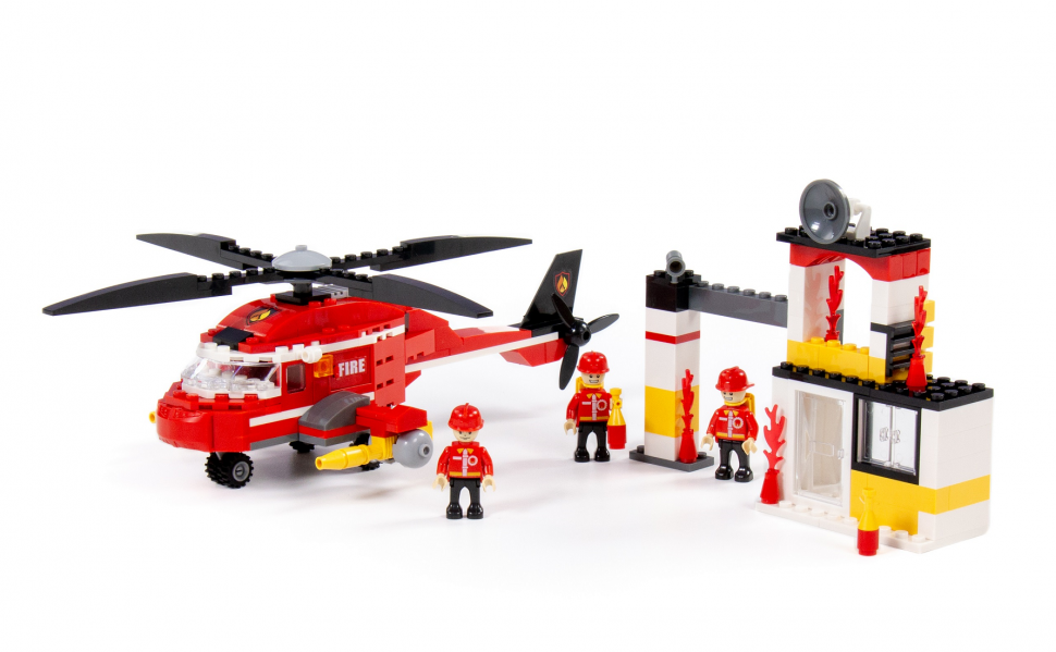 Конструктор Классик Пожарная служба-2 от фабрики Полесье 81933 представлен в виде команды спасателей с вертолетом и оборудованием.
