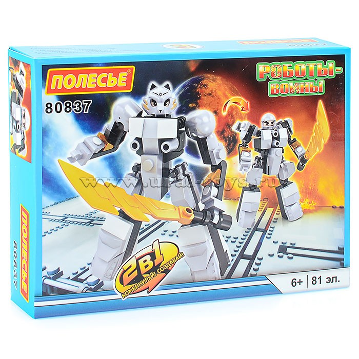 Набор состоит из 81 элемента, изготовленных из высококачественной пластмассы. Собранная модель робота имеет подвижные конечности, благодаря чему можно разыгрывать зрелищные сцены боев и сражений, развивая свою фантазию и воображение как во время сборки конструктора, так и во время процесса игры.
