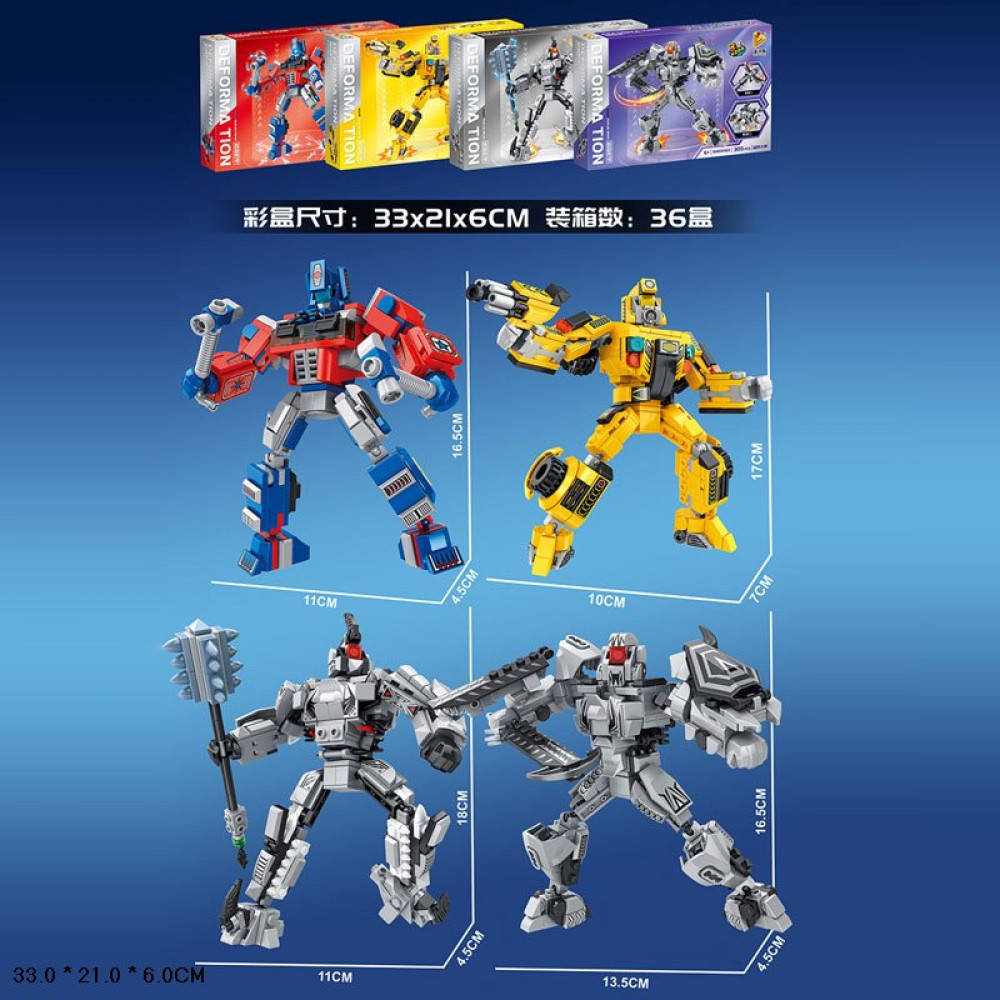 материал: пластмасса, бумага; компл.: 289 - 332 детали, инструкция; упаковка: картонная коробка; размер упаковки: 33.0 х 6.0 х 21.0 см Из набора собирается одна из трёх моделей: робот, машинка или животное. Размер робота: 11.0 х 4.5 х 16.5 см