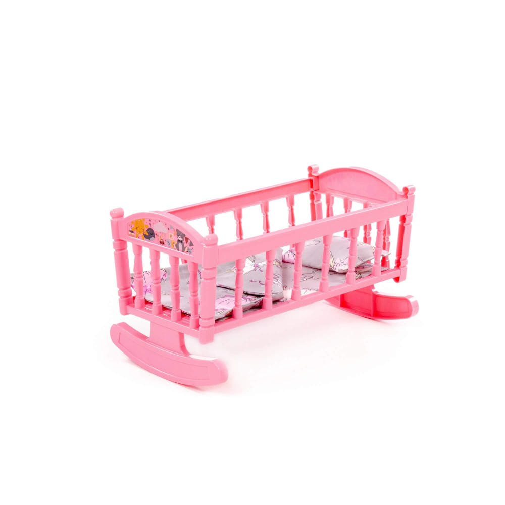 Кроватка-качалка сборная д/кукол №4 (8 элементов) (розовая) (в пакете