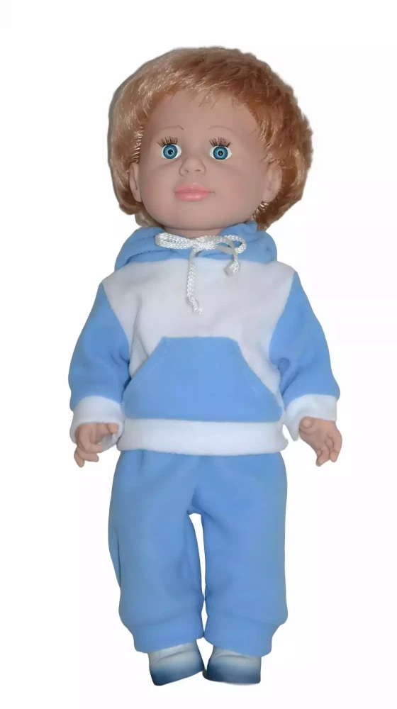 Кирилл - кукла-мальчик с правильными пропорциями тела и милым личиком. У Кирилла выразительные, не закрывающиеся глаза. Кукла изготовлена: голова, ручки и и ножки из пластиката ПВХ, туловище из полиэтилена. Ручки и ножки у куклы могут вращаться. Кукла может сидеть. Парик прошивной. Кирилл может быть озвучен приятным детским голосом, он произносит более 6 фраз: "Привет! Давай дружить! Давай поиграем! Ты знаешь интересную сказку? Расскажи мне! Молодец! Мне очень понравилось! Я тебя люблю!. "