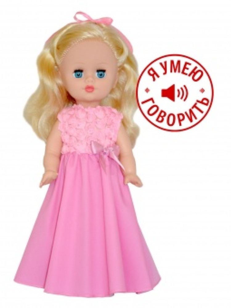 Кукла озвучена приятным детским голосом, она произносит 10 фраз: