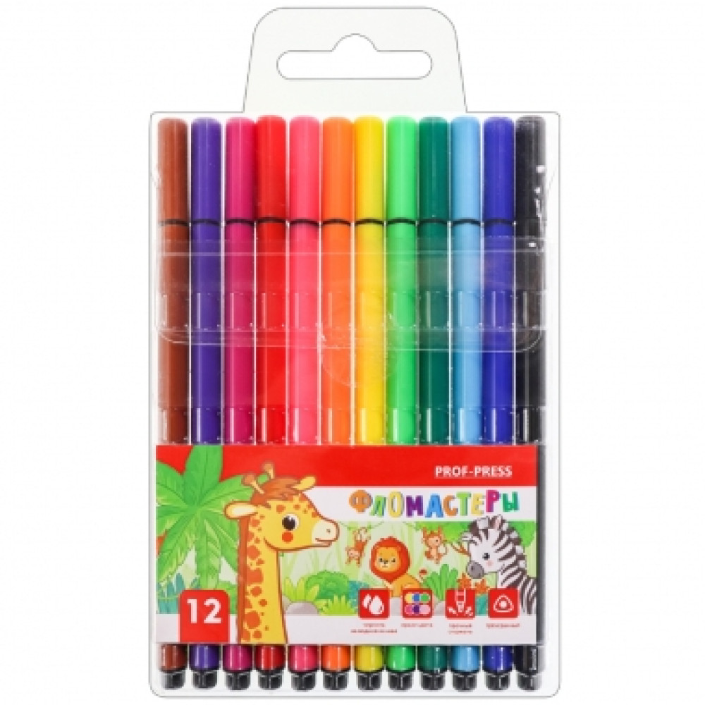 ФВ-1456 Фломастеры трехгранные 12цв. TINY ZOO, кратно 24