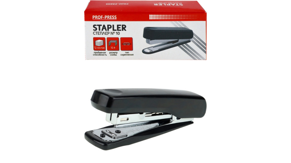 ОП-3404 Степлер (ОП-3404), №10, на 12 л, в карт. коробке, черный