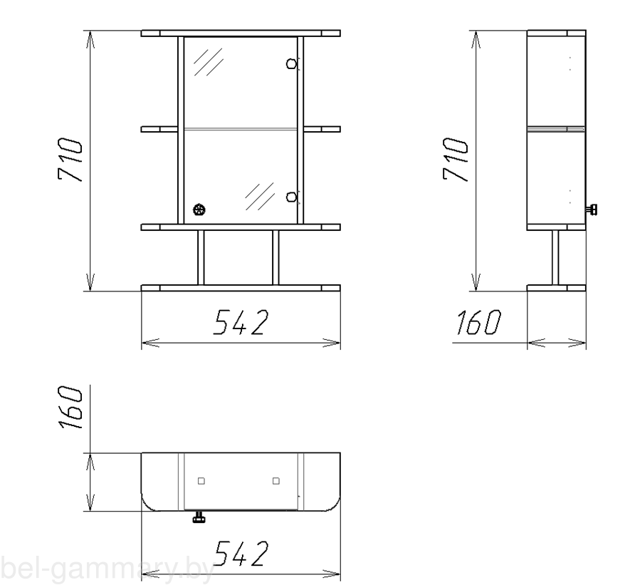 Корпус изделия изготовлен из ламинированного ДСП 16 мм, облицованого Т-образной кромкой ПВХ 2 мм, фасад Зеркало серебро.