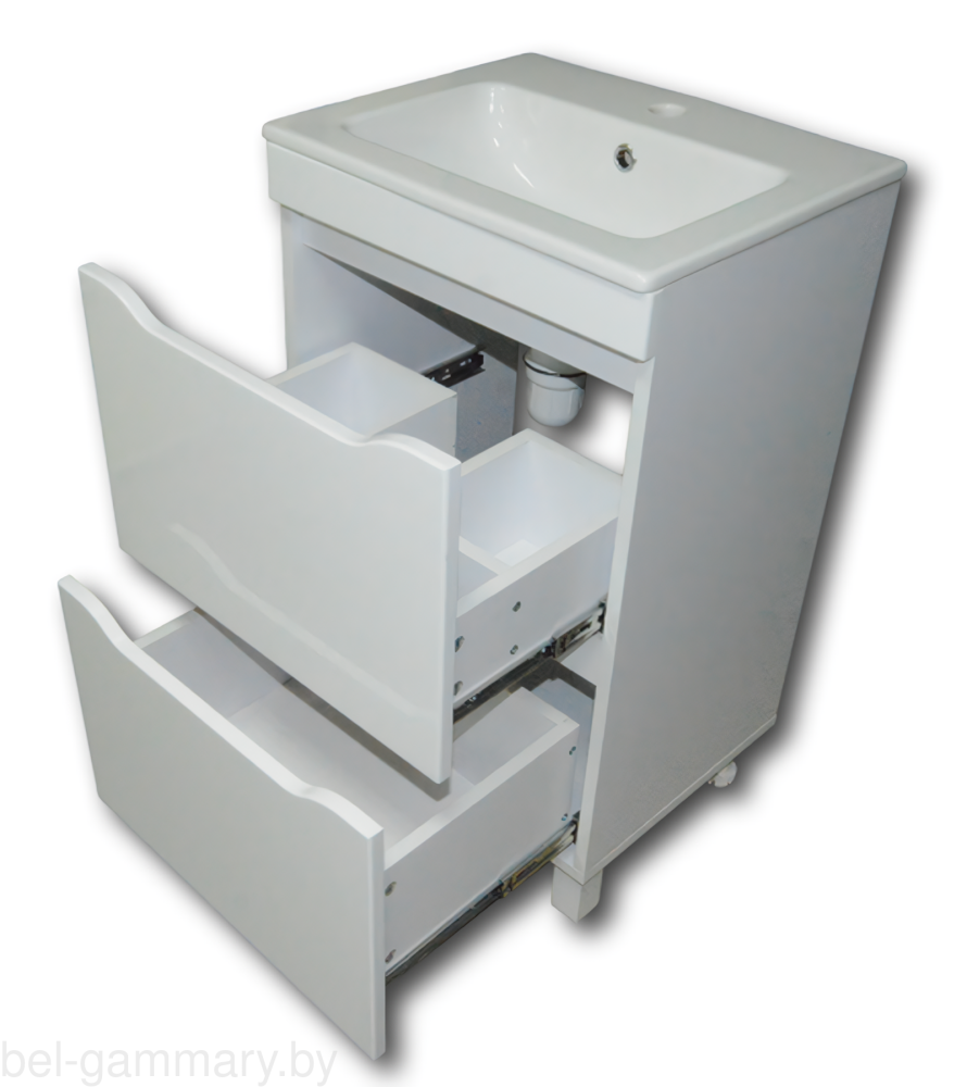 Тумба комплектуется глубоким, с большой чашей умывальником, европейского качества, производства Турция.