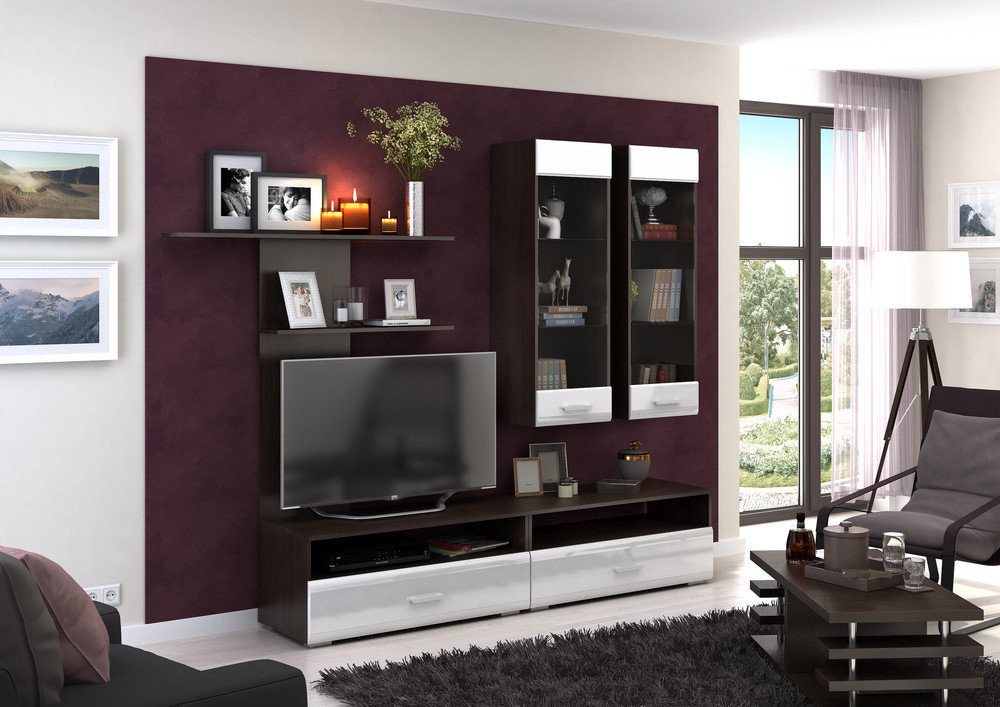 Гостиная "Вегас-2" ВЕНГЕ/БЕЛЫЙ ГЛЯНЕЦ