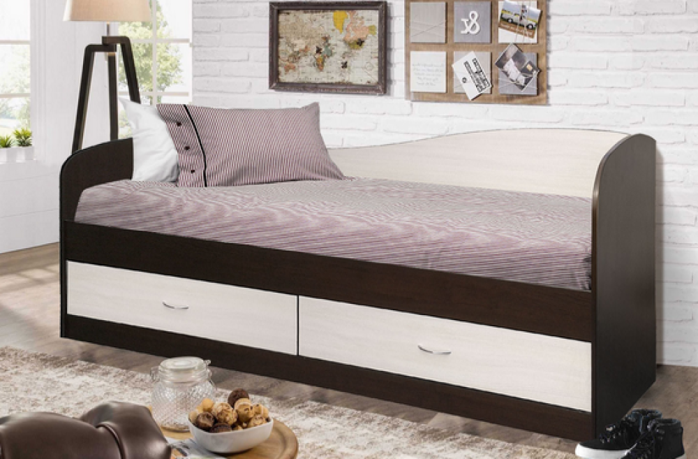 Изысканный изгиб спинки, мягкие округлые формы и жесткое основание подарят волшебные мгновения сна. В основании кровати размещены два вместительных выдвижных ящика для постельных принадлежностей и личных вещей.