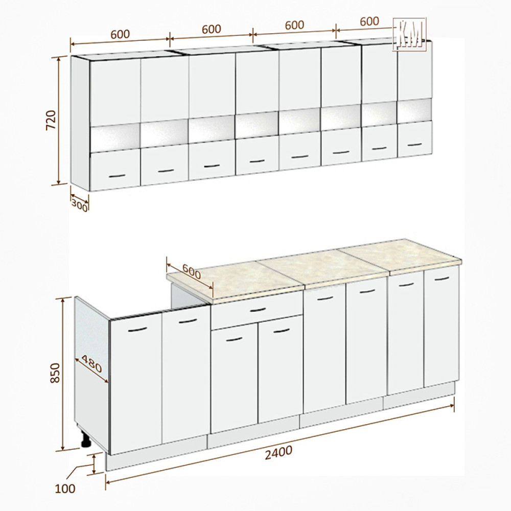 - Нижний шкаф под установку накладной мойки (в комплект не входит) с отделением для хранения, ШхГхВ: 60x48x85 см.