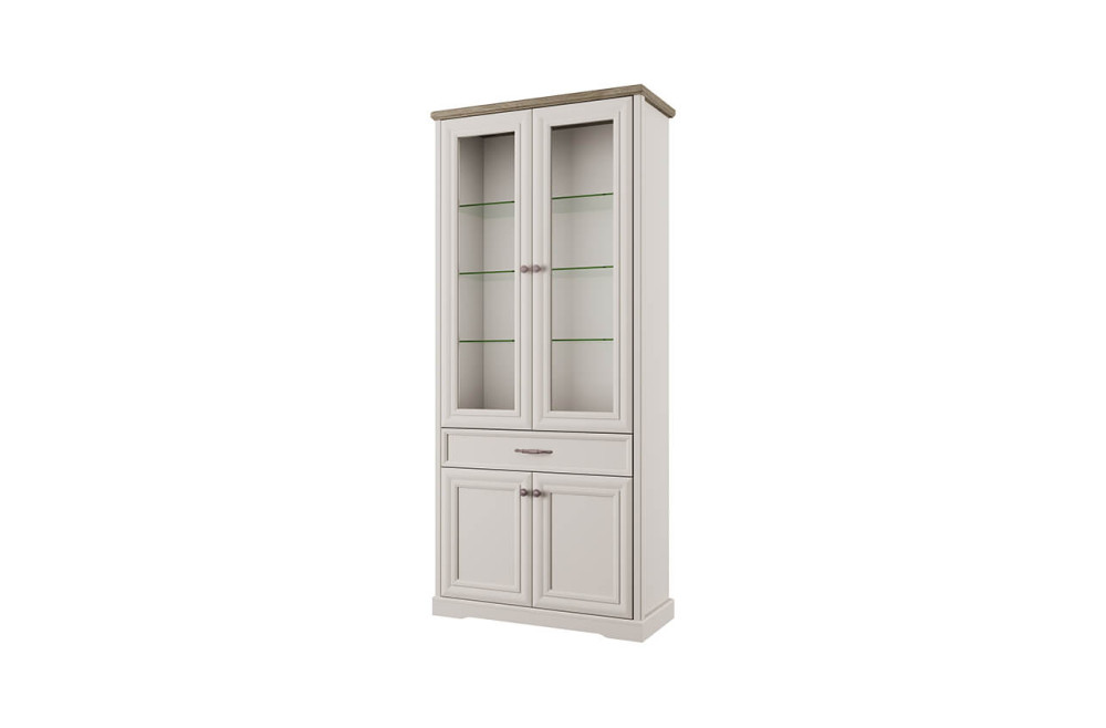 Н-р меб. TOSCANA NEW, Шкаф с витриной 2V2D1S ПЕРС.ЖЕМЧУГ/КАНЬОН