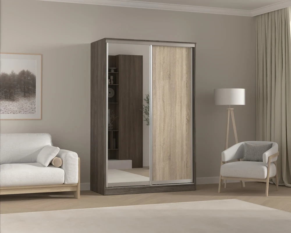Шкаф-купе СЕНАТОР ШК10 классика (ДСП+Зеркало, Орех элия / Дуб сонома)
