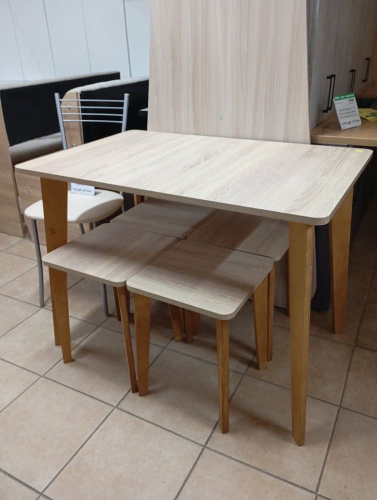 Стол с табуретами 4 шт., 1000х650, дуб сонома, арт. СВД-0058 (Обед.гр.