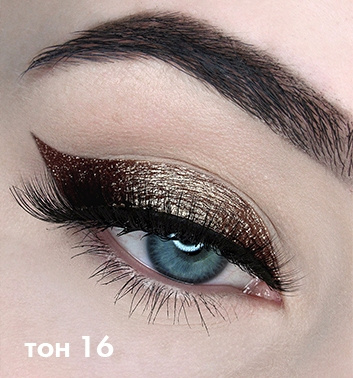 Тени быстро высыхают, сохраняют яркость цвета и сияния до 12 часов. Абсолютно легкие и невесомые, не ощущаются на веках.
