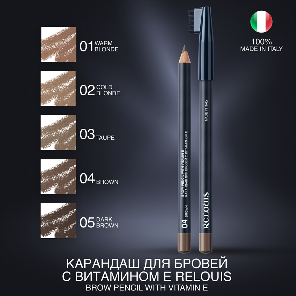 Карандаш для бровей с витамином Е RELOUIS, тон 04 brown РБ1710-23