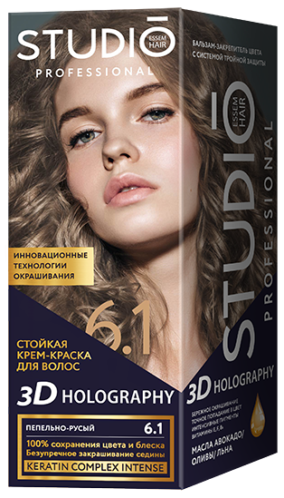 Крем-краска для волос STUDIO 3D Holography, тон6.1 Пепельно-русый