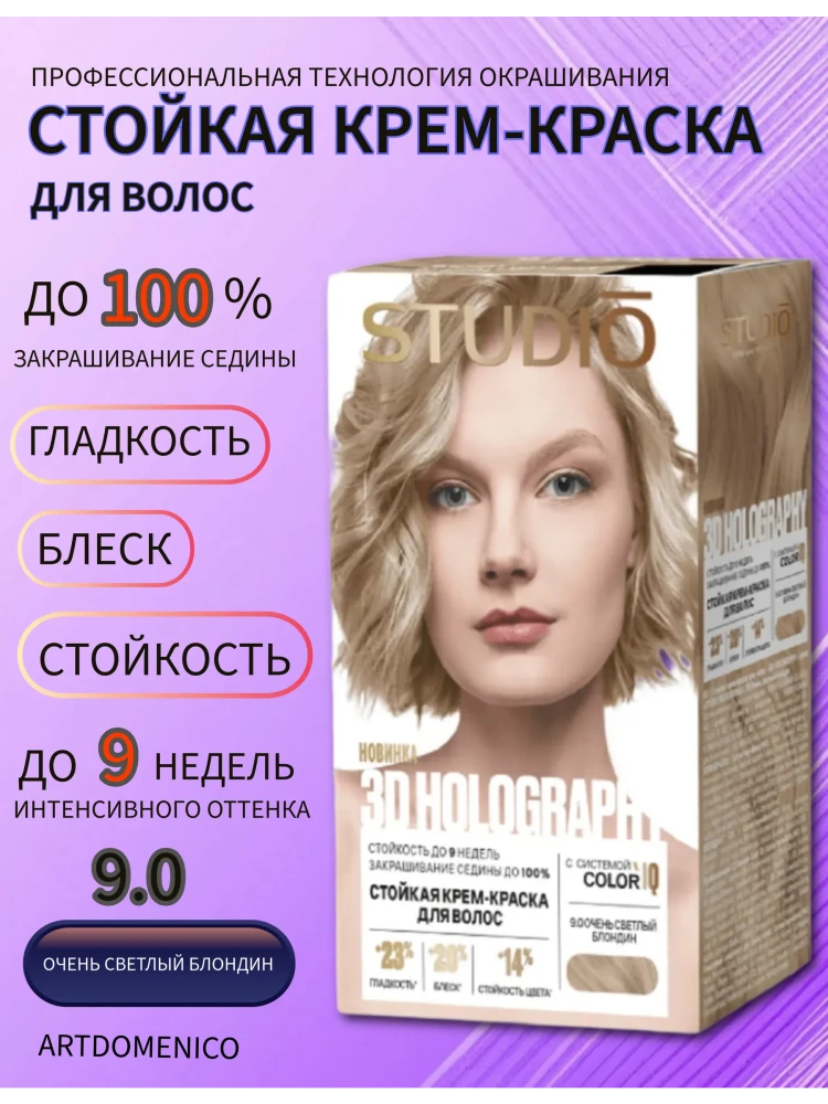 Крем-краска д/волос STUDIO Professional "3D HOLOGRAPHY" 9.0 Очень св.б