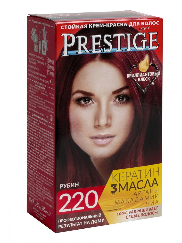 Новая формула крем-краски vip's PRESTIGE в сочетании с маской для дополнительного ухода разработана специально для здоровья и красоты волос. Придает бриллиантовый блеск и насыщенный, натуральный оттенок, обеспечивает глубокое питание и максимальную стойкость цвета. На 100% закрашивает седые волосы.
