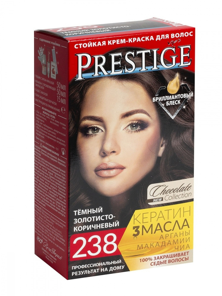 Крем-краска для волос vip's PRESTIGE, тон 238 - темный золотисто-коричневый