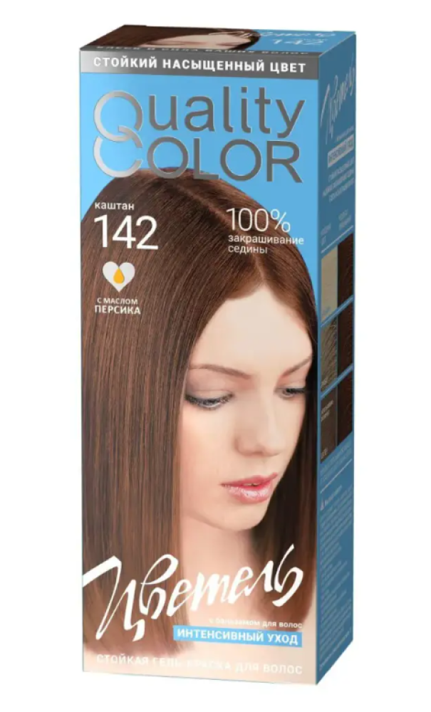 Стойкая гель-краска д/волос ЦВЕТЕЛЬ тон 142 "Каштан", 115 мл