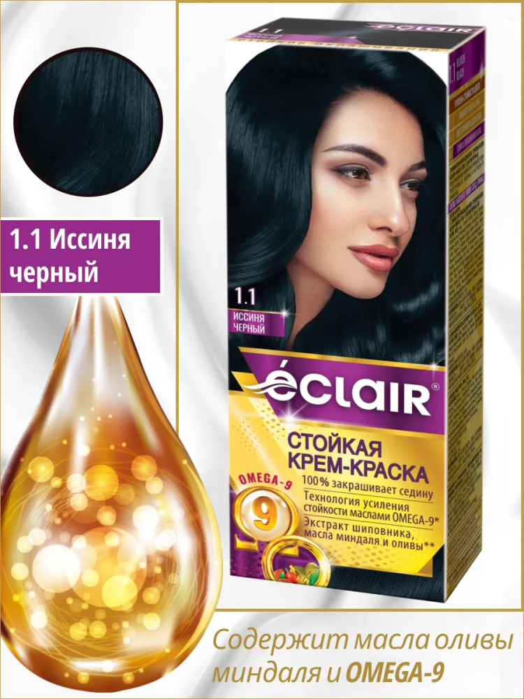 тон 1.1 ИССИНЯ-ЧЕРНЫЙ Крем-краска д/волос с OMEGA 9 "ECLAIR"