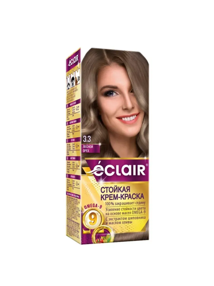 тон 3.3 ЛЕСНОЙ ОРЕХ Крем-краска д/волос с OMEGA 9 "ECLAIR"