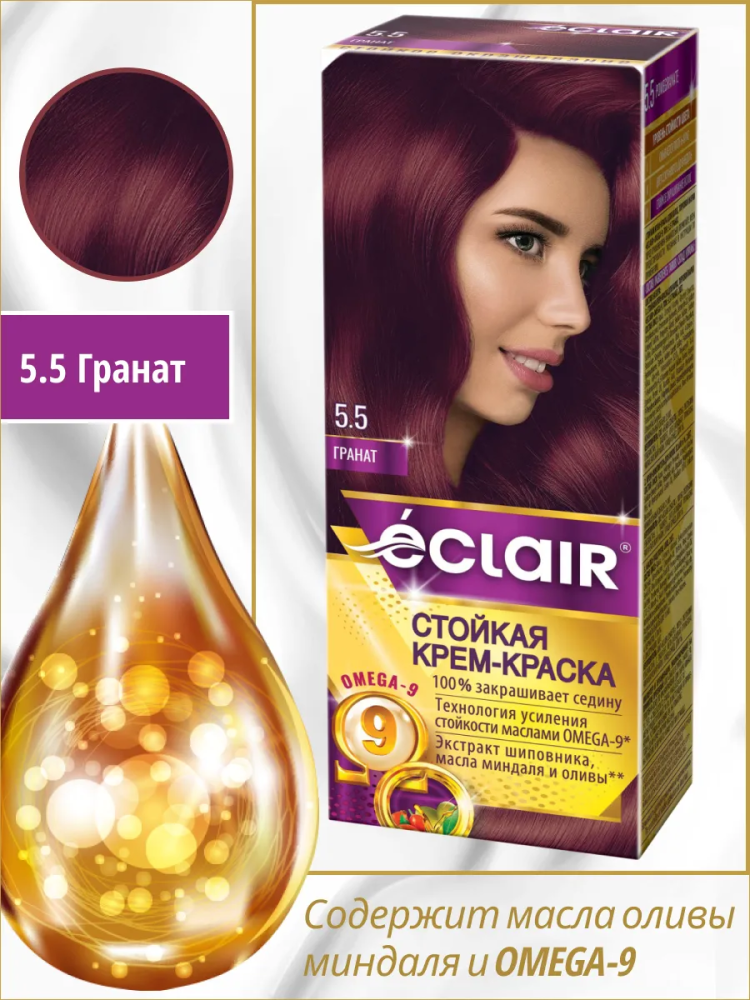 тон 5.5 ГРАНАТ Крем-краска д/волос с OMEGA 9 "ECLAIR"