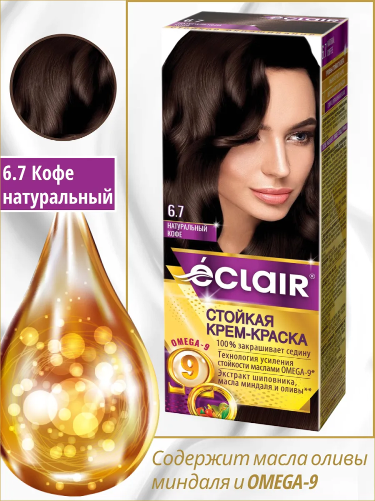 тон 6.7 НАТУРАЛЬНЫЙ КОФЕ Крем-краска д/волос с OMEGA 9 "ECLAIR"