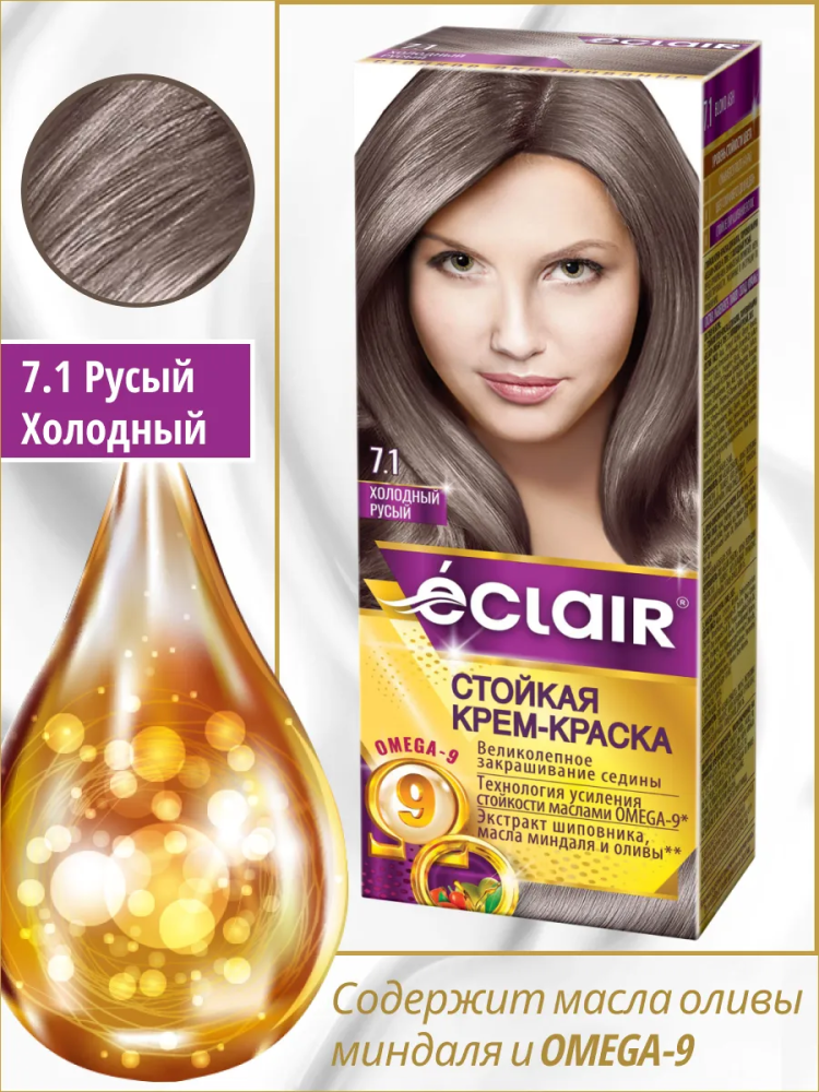 тон 7.1 ХОЛОДНЫЙ РУСЫЙ Крем-краска д/волос с OMEGA 9 "ECLAIR"