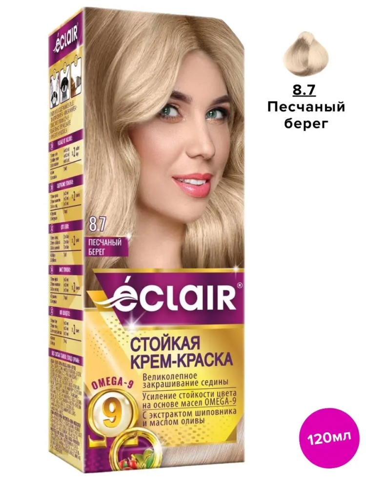 тон 8.7 ПЕСЧАНЫЙ БЕРЕГ Крем-краска д/волос с OMEGA 9 "ECLAIR"