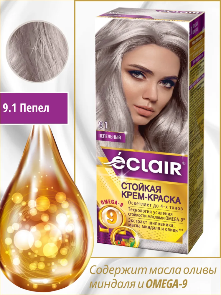 тон 9.1 ПЕПЕЛЬНЫЙ Крем-краска д/волос с OMEGA 9 "ECLAIR"