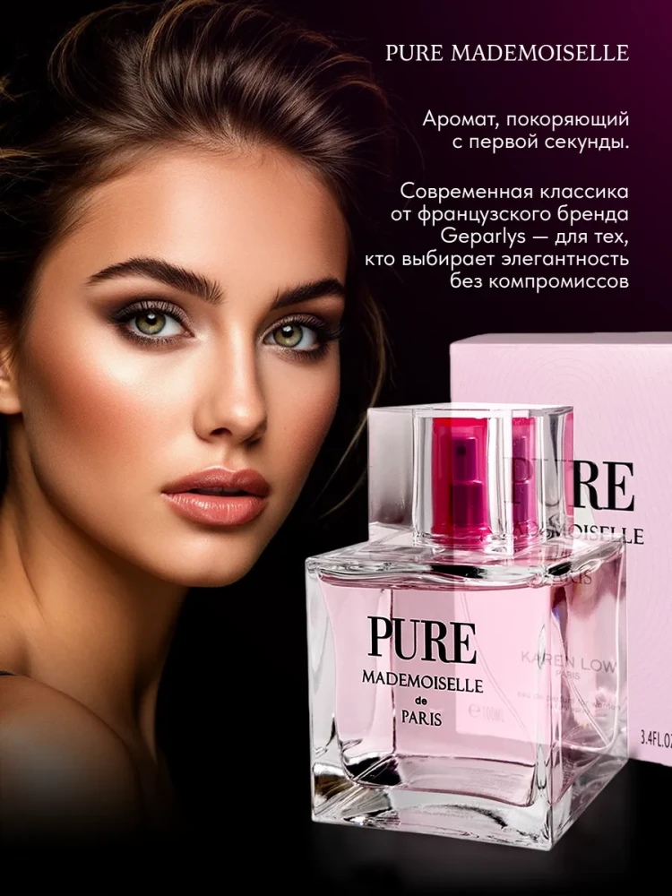 Pure Mademoiselle от GEPARLYS PARFUMS PARIS — это изысканный цветочный аромат, который подчеркнет вашу женственность и индивидуальность. Этот утонченный парфюм, представленный в элегантном флаконе объемом 100 мл, станет идеальным дополнением к любому образу. Нежный и чувственный аромат Pure Mademoiselle подарит вам уверенность и очарование в течение всего дня. Группа ароматов: Цветочные, Фруктовые Верхние ноты: Бергамот, Ананас, Пассифрут Средние ноты: Розовый пион, Фрезия, Персик Базовые ноты: Амбра, Кедр, Мускус