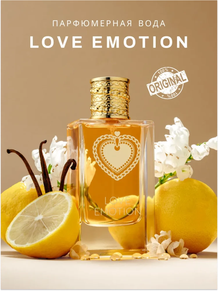 Верхние ноты: Сахар, лимон, ром. Сердце: Цветы апельсина. База: Ваниль. LOVE EMOTION — аромат первого свидания, вдохновлённый нежным лимонным кексом с апельсиново-ромовой пропиткой. Искристые верхние ноты сладкого сахара, свежего лимона и бархатного рома пробуждают чувства, словно первый робкий взгляд. Сердце раскрывается нежными цветами апельсина — воплощением элегантности и игривости. Тёплый шлейф ванили окутывает мягкостью, словно обещание сладких моментов, которые хочется повторить. Восточный гурманский аккорд дарит утончённую роскошь и напоминает: магия романтики начинается здесь. LOVE EMOTION — ваша история о любви в каждом вздохе.