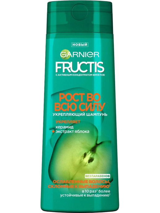 Первый укрепляющий шампунь для ослабленных и склонных к выпадению волос с Керамидом и Активным Концентратом Фруктов - волосы растут более сильными, в 10 раз более устойчивые к выпадению. Секрет формулы без парабенов: Уникальная комбинация Керамида, молекулы, восполняющей потерянные липиды в ослабленном волосе, и экстракта яблока - мощного набора компонентов, укрепляющего волосы.Формула действует по всей длине волоса по мере его роста, восстанавливает структуру и возвращает волосам силу. Вы увидите результат: качество волос заметно улучшается. Cпособ применения: Хорошо намочите волосы от корней до кончиков. Нанесите шампунь, аккуратно массируя кожу головы кончиками пальцев. Тщательно промойте волосы.