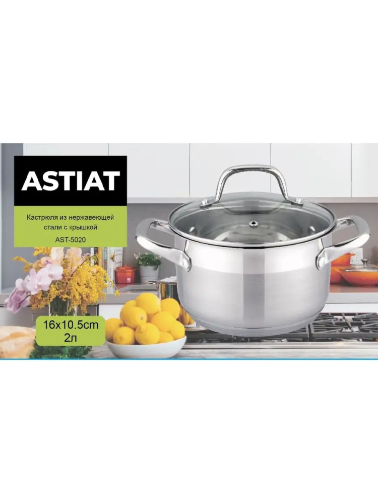 Кастрюля с крышкой AST-5020 (нжс)d=16, 2.0л