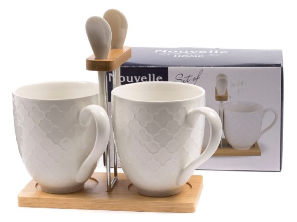 Н-Р КРУЖЕК фарф.2 шт 320 мл с ложками на бамбук.под.(арт.2630270)