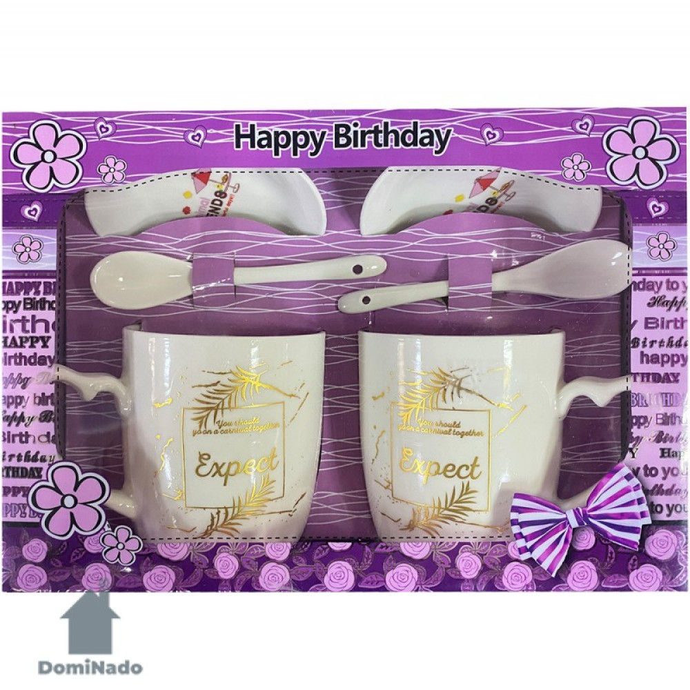 Набор подарочный (Чашка 2шт., блюдце 2шт., ложка 2шт.) из фарфора Арт