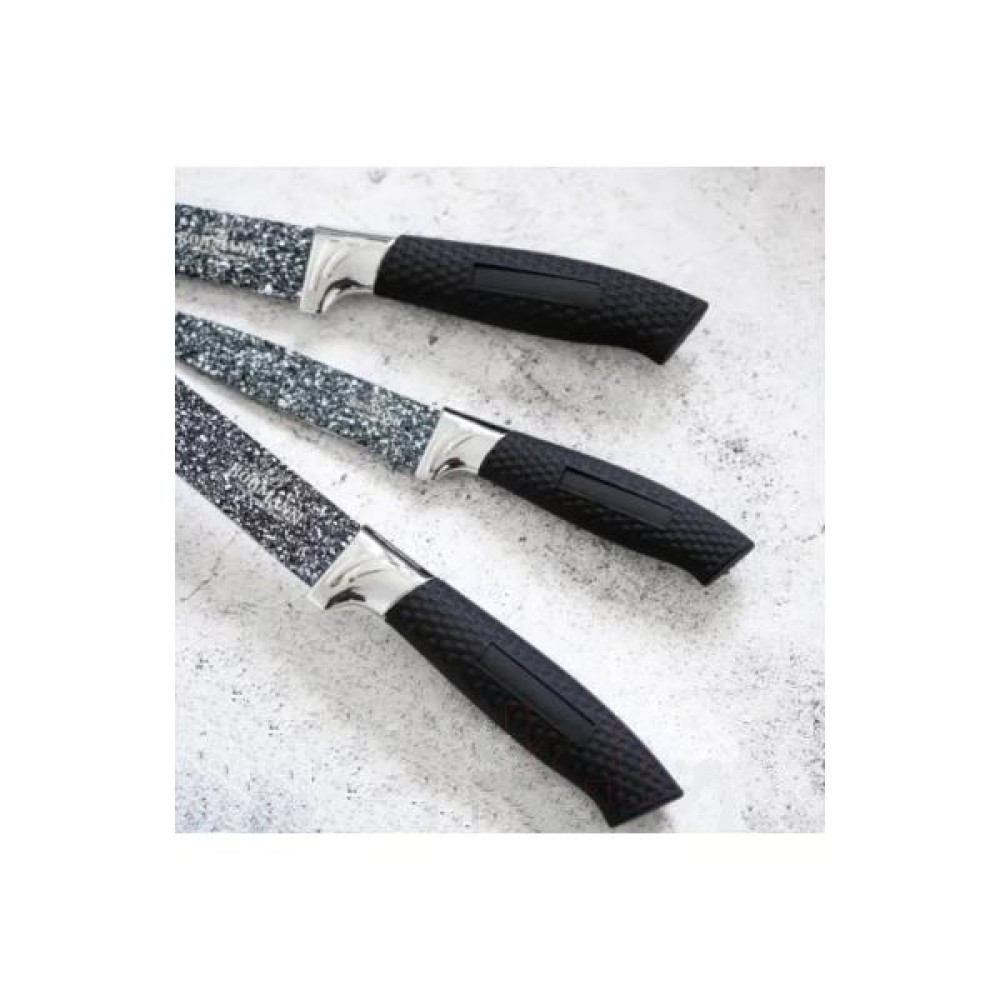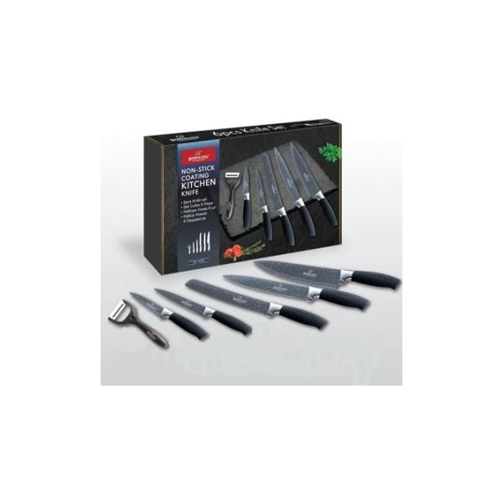 Набор ножей BH-5258 — универсальный набор для каждой кухни. Нескользящие ручки ножей гарантируют безопасность при нарезке и превращают процесс приготовления в удовольствие. Лезвия изготовлены из высококачественной стали и имеют износостойкую кромку, поэтому ножи дольше остаются острыми. Это отличные ножи для повседневной нарезки хлеба, фруктов, овощей и мяса. Изделия имеют гладкую, легко чистящуюся поверхность. Оригинальный дизайн набора и качество исполнения не оставят вас равнодушным. Качественная и стильная упаковка делает этот набор прекрасным подарком и прекрасно украсит интерьер вашей кухни.