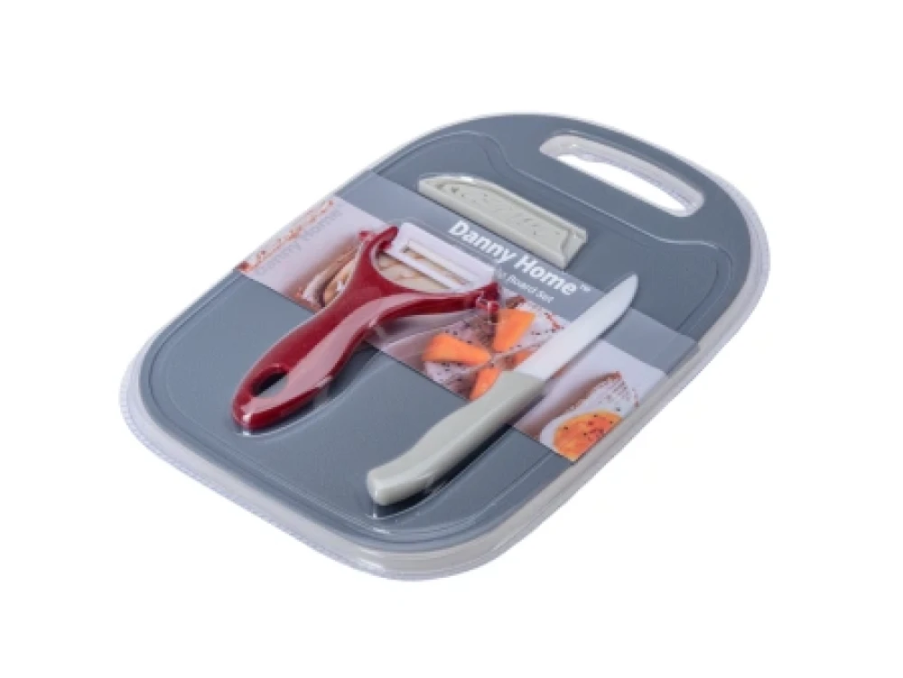 109 857 НАБОР КУХОННЫЙ керамика/пласт 4 пр.: скребок, нож, чехол, доска разделочная пластмассовая