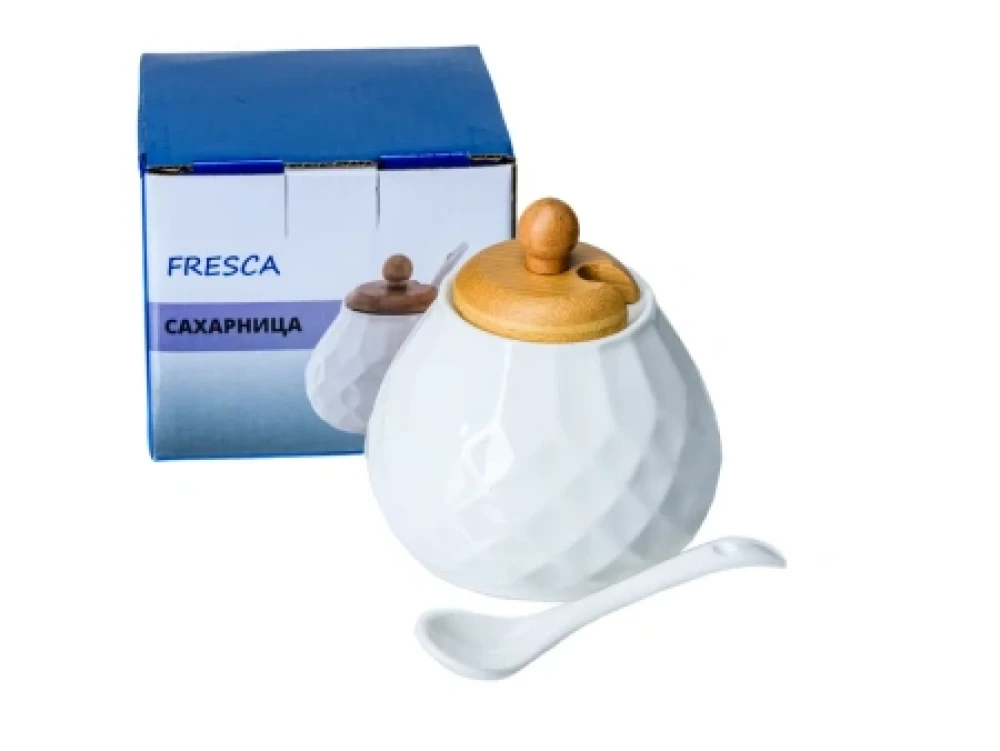САХАРНИЦА фарфор/бамбук с ложкой 300 мл (арт. PJ02196-A)