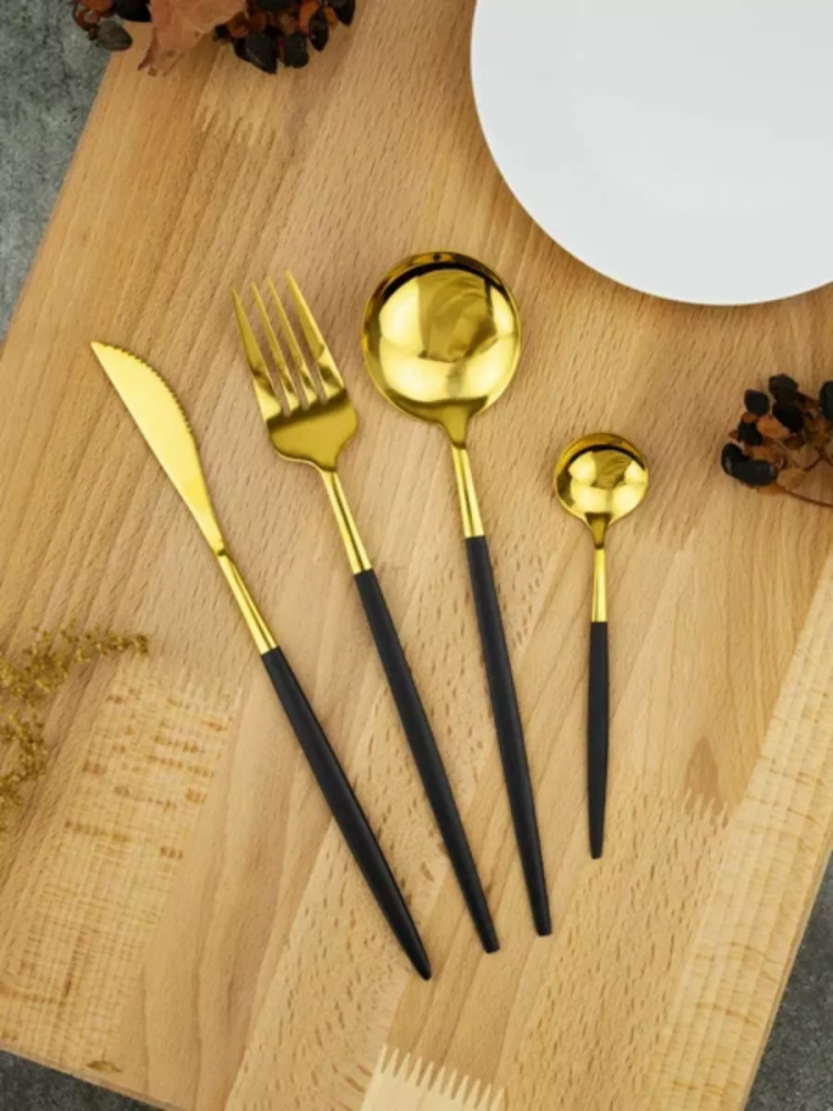 Столовый набор 4 предмета. Материал: нержавеющая сталь 18/10. Столовая ложка 1 шт. Столовая вилка 1шт. Чайная ложка 1 шт. Столовый нож 1шт.