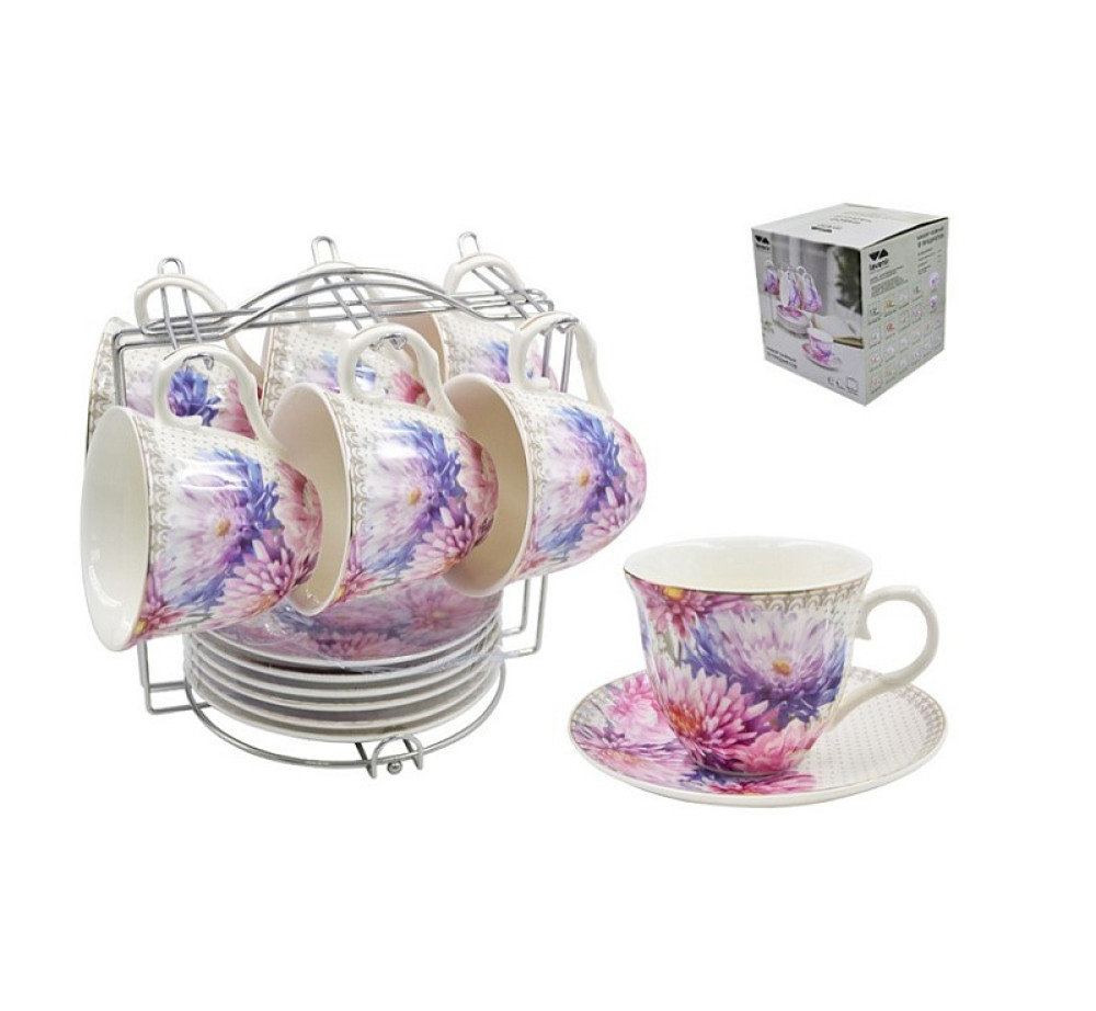 Чайный набор на метал. подставке (12 пр.) Lavenir 220 мл, 14 см, C03-44