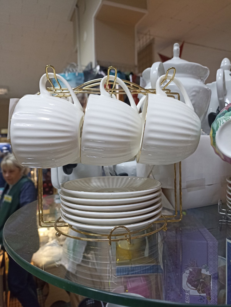 Чайный набор на металлической подставке (12 пр.) из фарфора