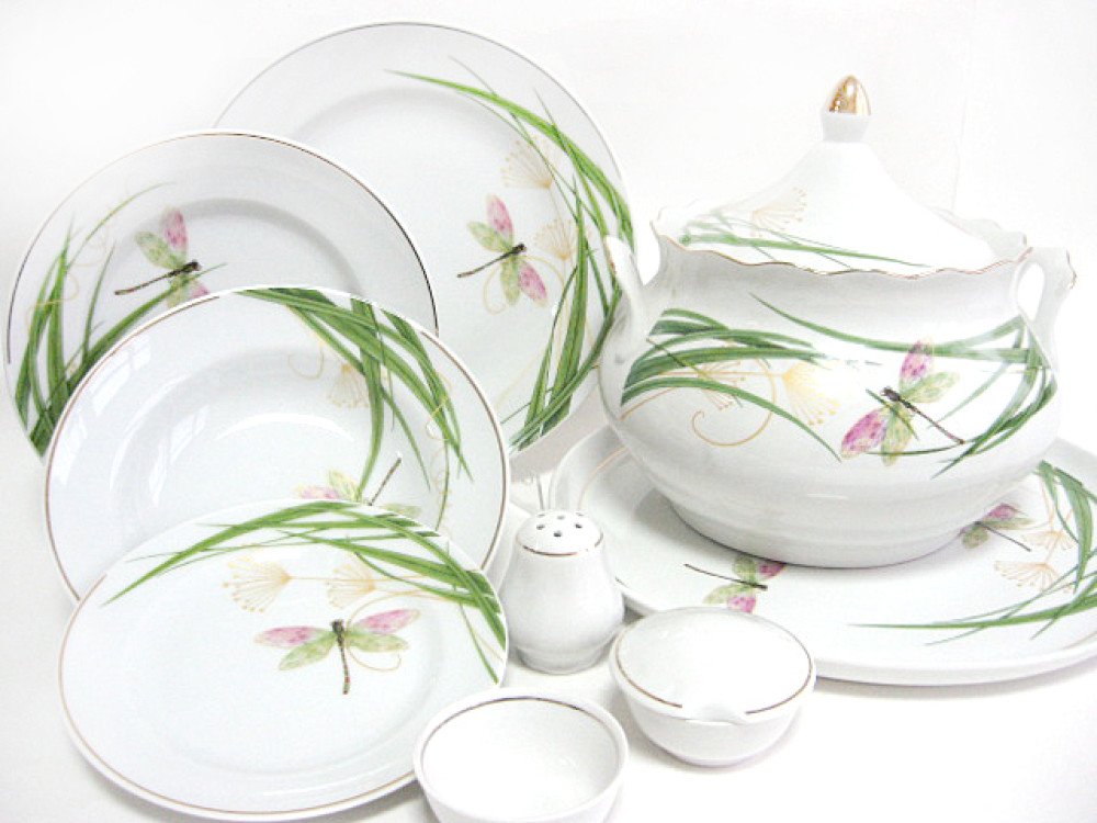 Крышка вазы для супа 3000 см3 ф.303 "Романс" - 1 шт.; Ваза для супа 3000 см3 без крышки ф.303 "Романс" - 1 шт.; Блюдо для пиццы 300 мм ф.297 - 1 шт.; Селедочница 250 мм ф.653 "Идиллия" - 1 шт.; Салатник 1150 см3 ф.653 "Идиллия" - 1 шт.; Салатник 360 см3 ф.653 "Идиллия" - 6 шт.; Тарелка 170 мм мелкая ф.653 "Идиллия" - 6 шт.; Тарелка 200 мм мелкая ф.653"Идиллия" - 6 шт.; Тарелка 240 мм мелкая ф.653 "Идиллия" - 6 шт.; Тарелка 240 мм глубокая 500см3 ф.653 "Идиллия" - 6 шт.; Солонка 50 см3 ф.303 "Романс" - 2 шт.; Перечница 60 см3 ф.322 "Романс" - 1 шт.; Крышка к горчичнице 50 см3 ф. 303 "Романс" - 1 шт.