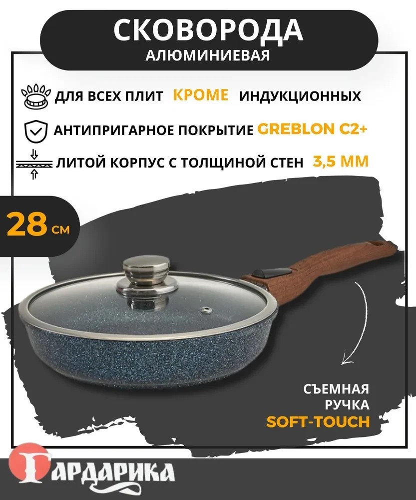 ✅Покрытие: Усиленное многослойное антипригарное покрытие с гранитным вкраплением.