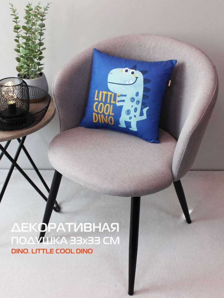 Подушка дек. DINO. LITTLE COOL DINO. 33x33 синий, голубой, желтый Арт.