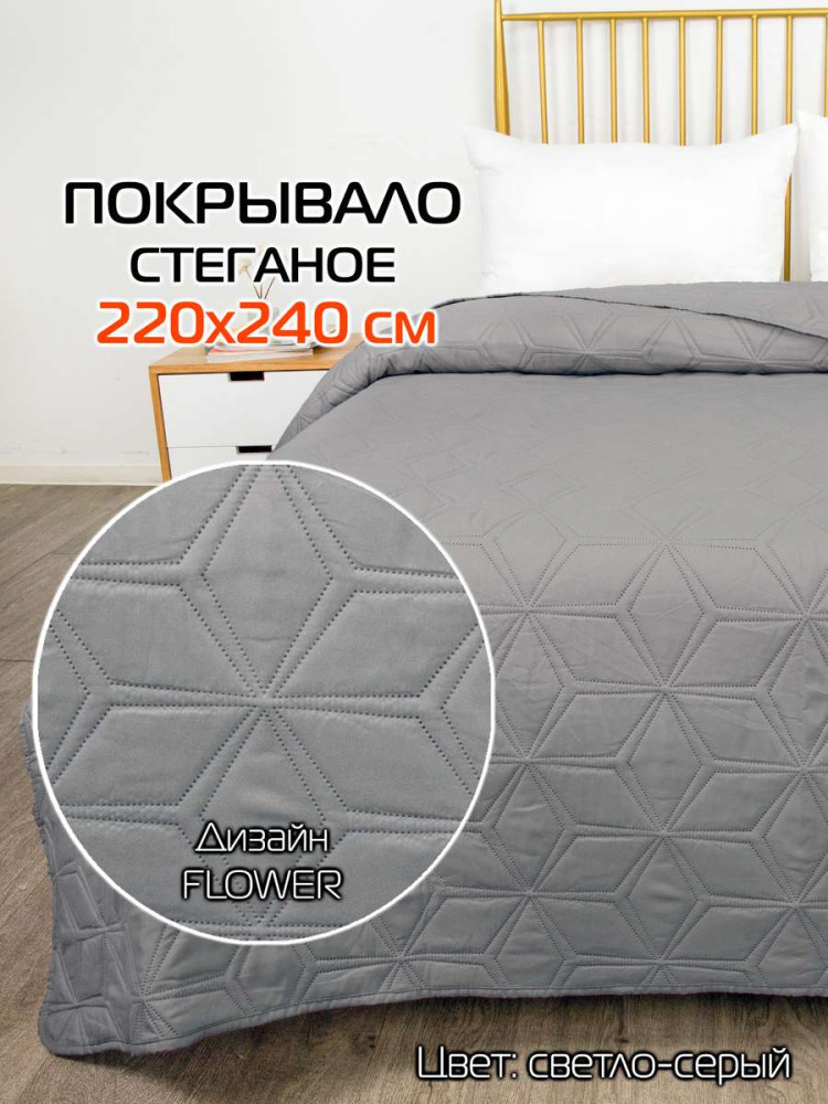 Покрывало МАТЕХ FLOWER 220*240. Цвет светло-серый, арт. 63-797