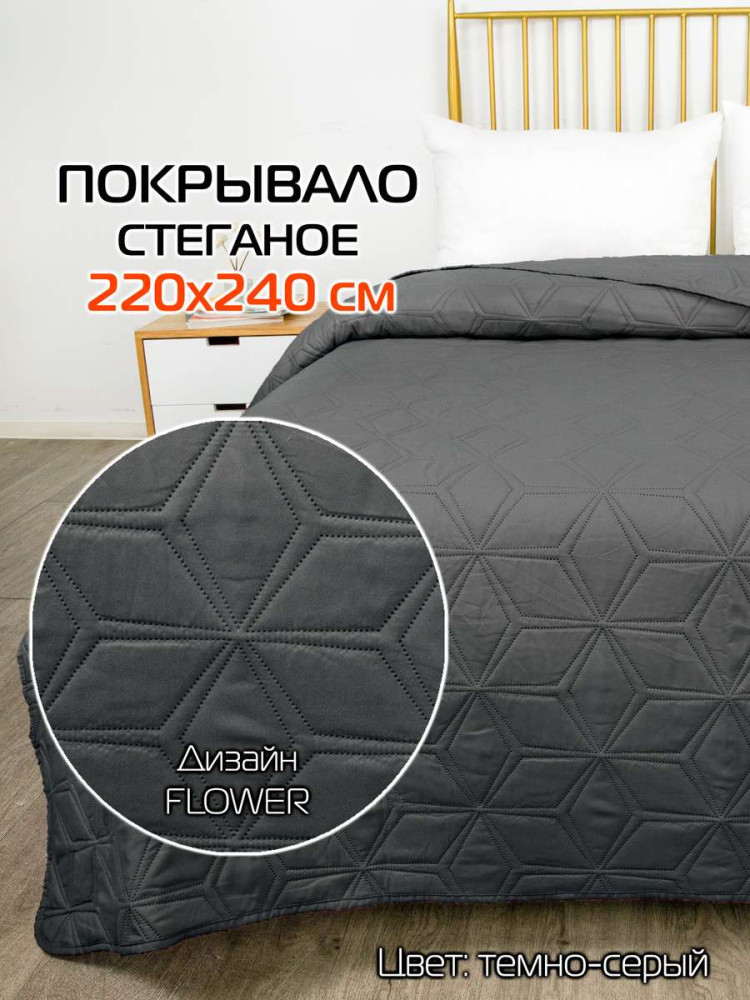 Покрывало МАТЕХ FLOWER 220*240. Цвет темно-серый, арт. 63-803