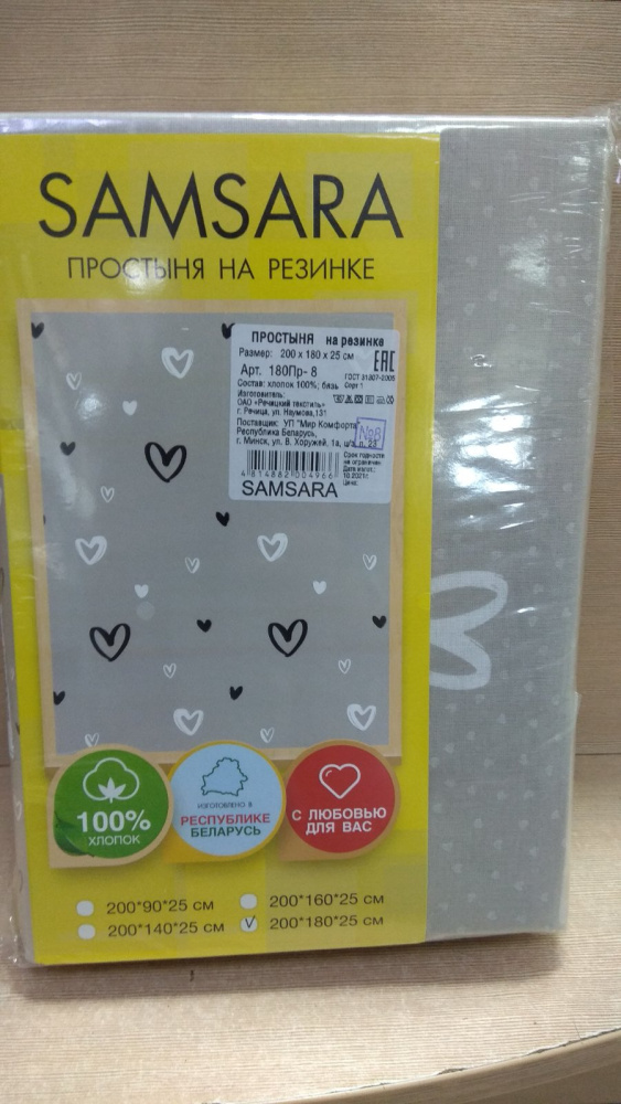 Простыня на резинке (200*180*25),арт.180Пр-8 (бязь)